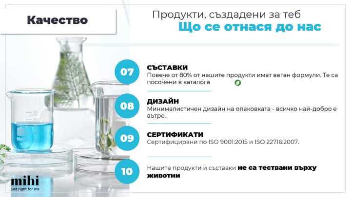 В Mihi ще имате ментор, който ще ви помогне да направите първите си стъпки в компанията, ще ви подкрепя по време на вашето сътрудничество с компанията, ще ви говори за правилата и ще проведе индивидуално обучение за производството, продажбите и работата на компанията в подходящ начин за вас.